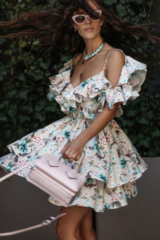 Savršena romantična haljina za leto! Razigran i romantičan kroj, cvetni dezen, detalji u vidu karnera i vesele boje su upravo ono što čini ovu haljinu posebnom! Uparite sa štiklama ili ravnom obućom i spremne ste za izlazak.